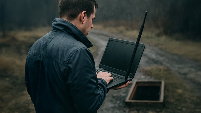 Pochůzkový odečet znamená, že technik chodí okolo domu s notebookem a anténou. Vodoměry sice vysílají data, ale pouze na krátkou vzdálenost, a tak je nutné obejít budovu nebo projít všechny chodby, aby došlo k zachycení signálu.