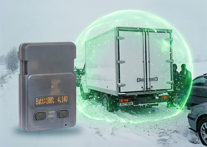 SMARTBOX je kompaktní jednotka, která měří teplotu, vlhkost, nárazy a zároveň posílá i svou polohu. Není k tomu potřeba žádná kabeláž ani instalace – funguje samostatně, na vlastní baterii. Stačí ho vložit do auta nebo položit do skladu a monitoring běží okamžitě.